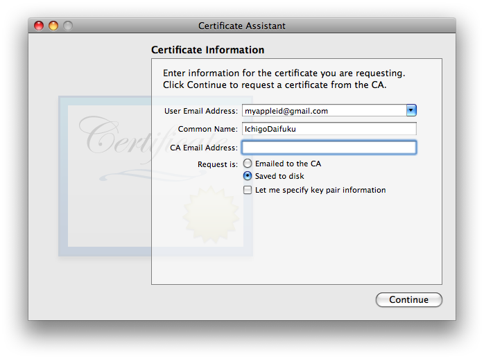 The way, I could tell that it was going to work is the assistant had the checkbox in the UI that says “Let me specify key pair information”. When that checkbox was present, then the assistant would actually make the Certificate Signing Request file.