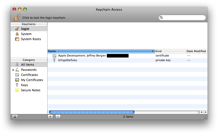 Double click to to add the Signing Certificate to the Login keychain. Note that the Signing Certificate MUST appear in the “My Certificates” section of Keychain Access. If you see it in the “All Items” section but not in the “My Certificates” section, then Xcode will not properly see it.