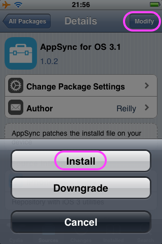 http://ios3.party - Install AppSync: Tap on “iPhone OS 3 Party”, Tap on “All Packages”, Tap on “AppSync for OS 3.1”, tap “Modify”, then tap “Install”, lastly tap “Confirm”