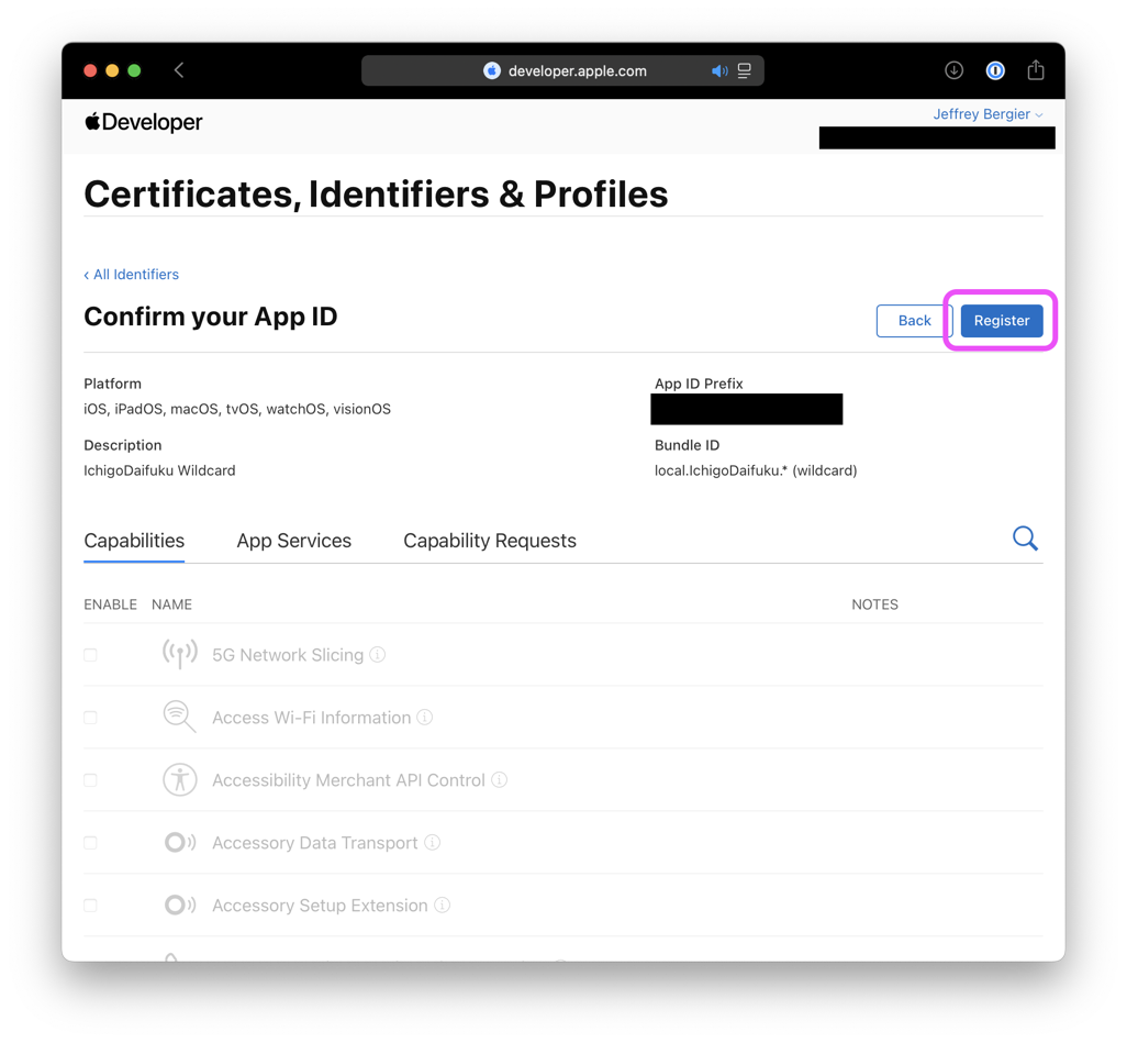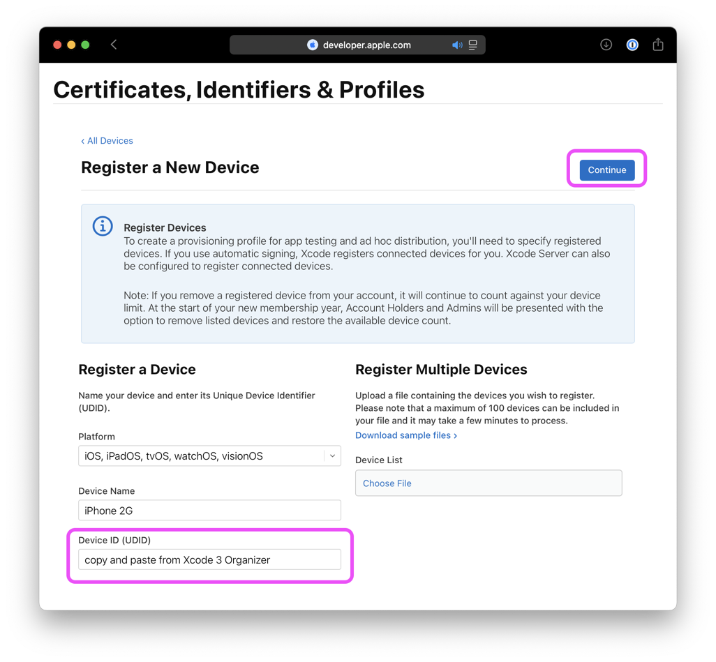 Now you are going to add your device to the Apple Developer Portal so that we can generate a provisioning profile in the next step.