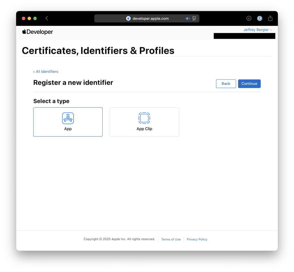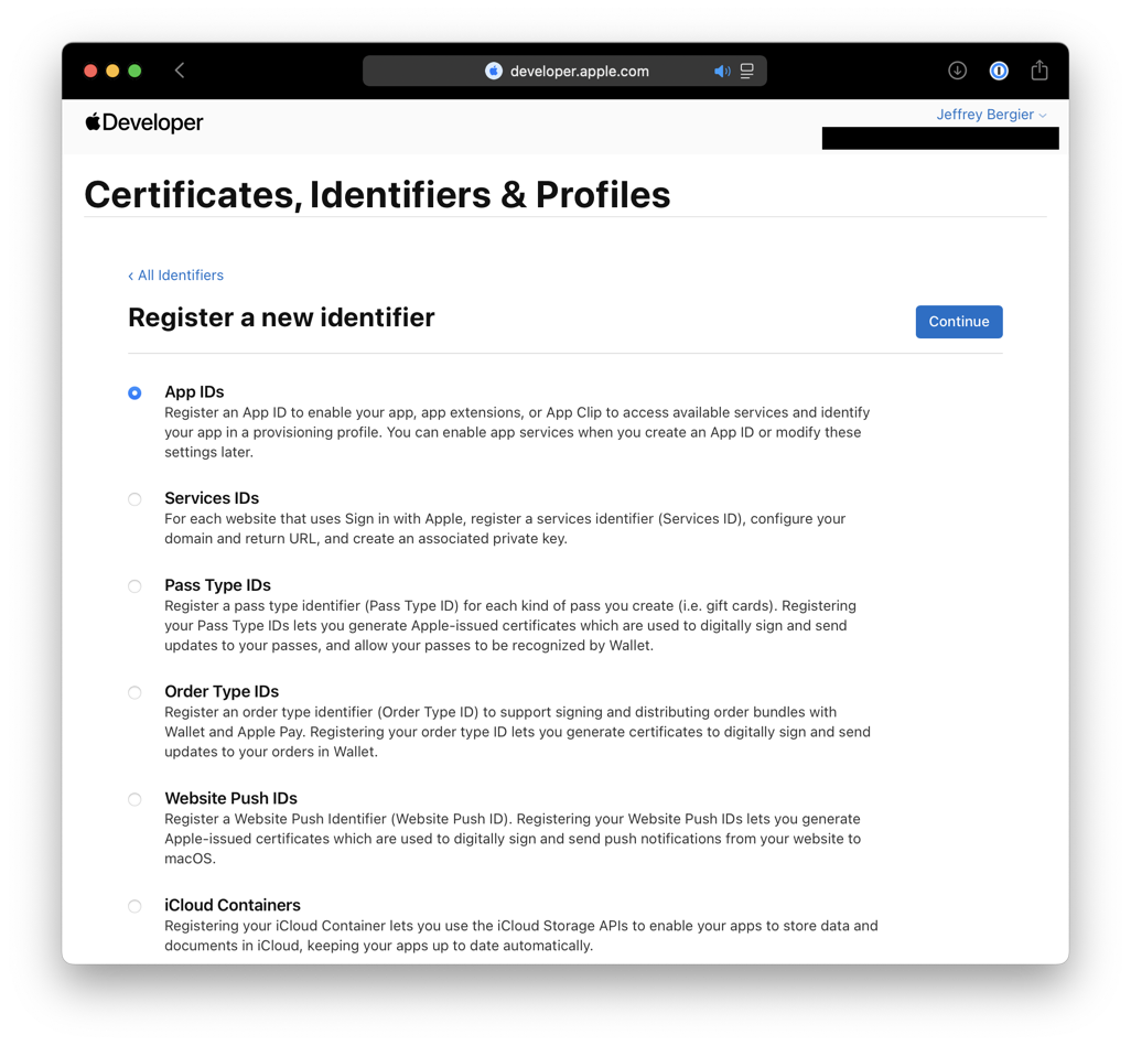 - Open Apple Developer Portal - Identifiers and click the + button next to Identifiers