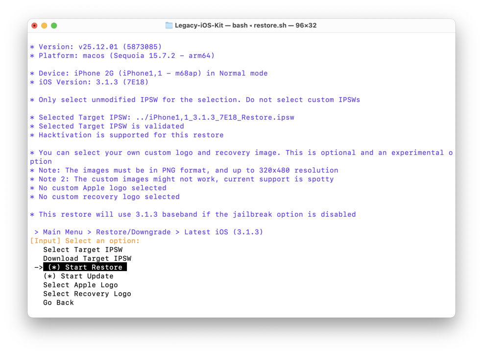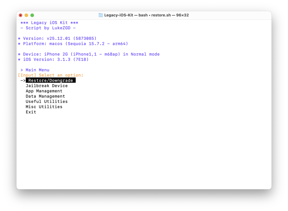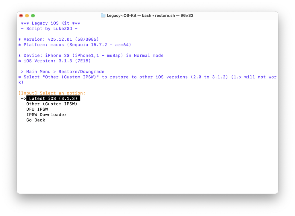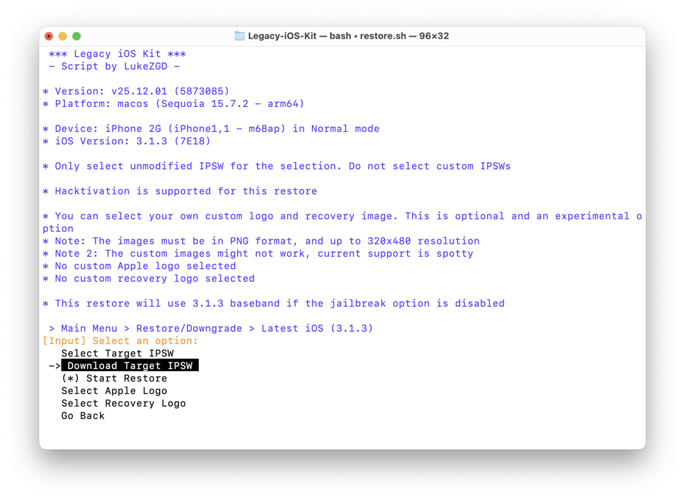 - Note that the script will offer to download the latest version of the OS for you, but if you want to select your own version you can download it from IPSW.me
