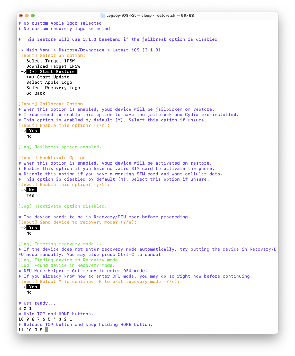 - Jailbreak: Restore and Jailbreak iPhone using Legacy iOS Kit