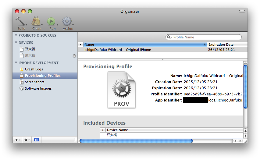 - Organizer: In Xcode, choose Window→Organizer. In the sidebar, select Provisioning Profiles and then drag the profile from the Finder into the Organizer