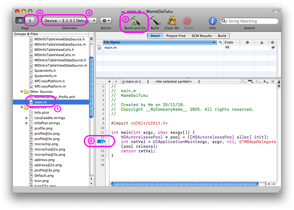 main.m - ② Set a breakpoint on or before UIApplicationMain (click in that little gutter area)