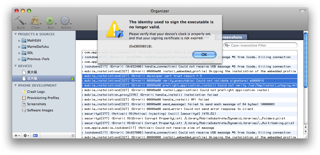 - If you see the Device Error above, then this version of Xcode is not compatible with your device or the OS thats installed on it.